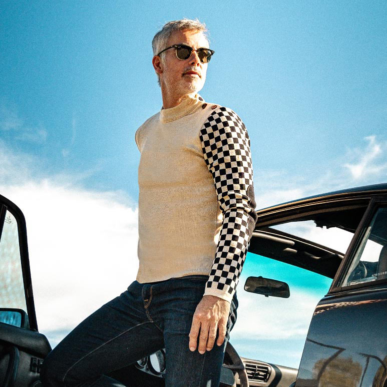 La singulière manche à damier est un clin d’oeil racing, inspirée du drapeau des mythiques épreuves, des arrivées légendaires, le pull Chill est un hommage à l’émotion. Au bonheur de franchir la ligne sous le drapeau à damiers et de partager ce moment entre les équipiers et les amis.